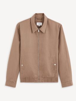 Lehká jednobarevná bunda se zapínáním na zip. U krku límec. Přední boční kapsy se zapínáním na druk. Dlouhé rukávy s manžetou. Pružný spodní lem a s podšívkou.