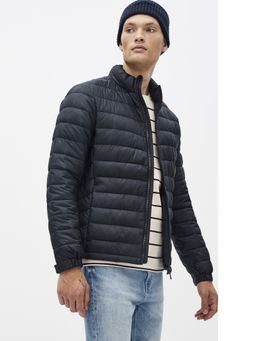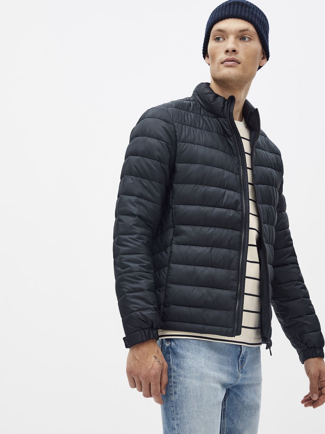 Lehká prošívaná bunda. Zapínání na zip. Šikmé boční kapsy. Vyšší límec bez kapuce.