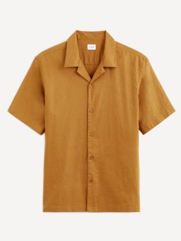 Lněná košile s rozhalenkou. Celopropínací na knoflíčky. Krátký rukáv a rovný střih. Jednobarevná v havajském stylu.