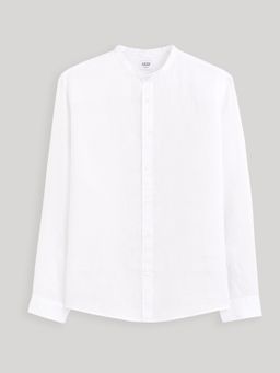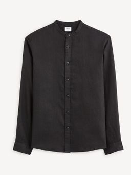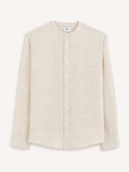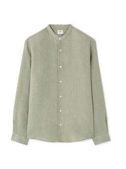 Lněná košile s dlouhým rukávem. U krku krátký stojáček bez límečku. Zapínání na knoflíčky a rovný střih. Dlouhé rukávy s manžetou. Zaoblený spodní lem. Košile se hodí k elegantním kalhotám, ale i kraťasům. Výborný materiál na léto.