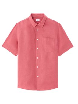 Lněná košile s krátkým rukávem. U krku límeček a na hrudi našitá malá kapsička. Rovný střih se zapínáním na knoflíky. Len je ideální materiál na léto.