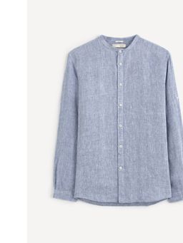 Lněná košile v reguler střihu. Neformální košile se stojáčkem u krku. Dlouhé rukávy, které lze zarolovat do krátkého rukávu. Zapínání na knoflíčky.