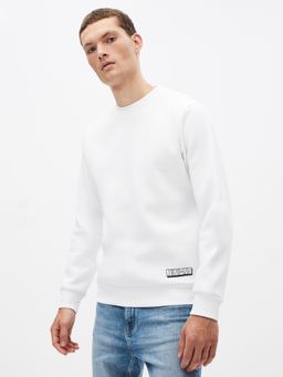 Veselá mikina s potiskem mimoňů na zádech. Sněhově bílá s kulatým výstřihem. Široké a pružné náplety. Příjemný materiál.
