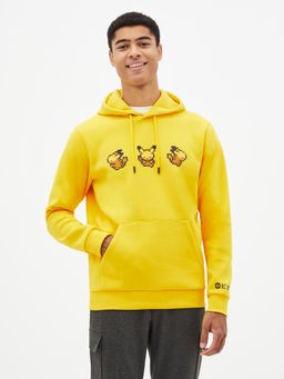 Výrazně žlutá mikina s potiskem Pokémon. Kapuce se stahovací šňůrkou. Velká klokaní kapsa. Široké a pružné náplety. Příjemný materiál.