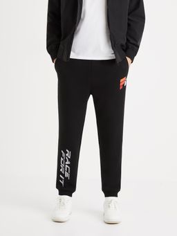 Sportovní tepláky s pružným pasem. Nechybí stahovací šňůrka. Šikmé boční kapsy. Na jedné nohavici nápis Race for it. Široké a pružné náplety. Příjemný materiál.