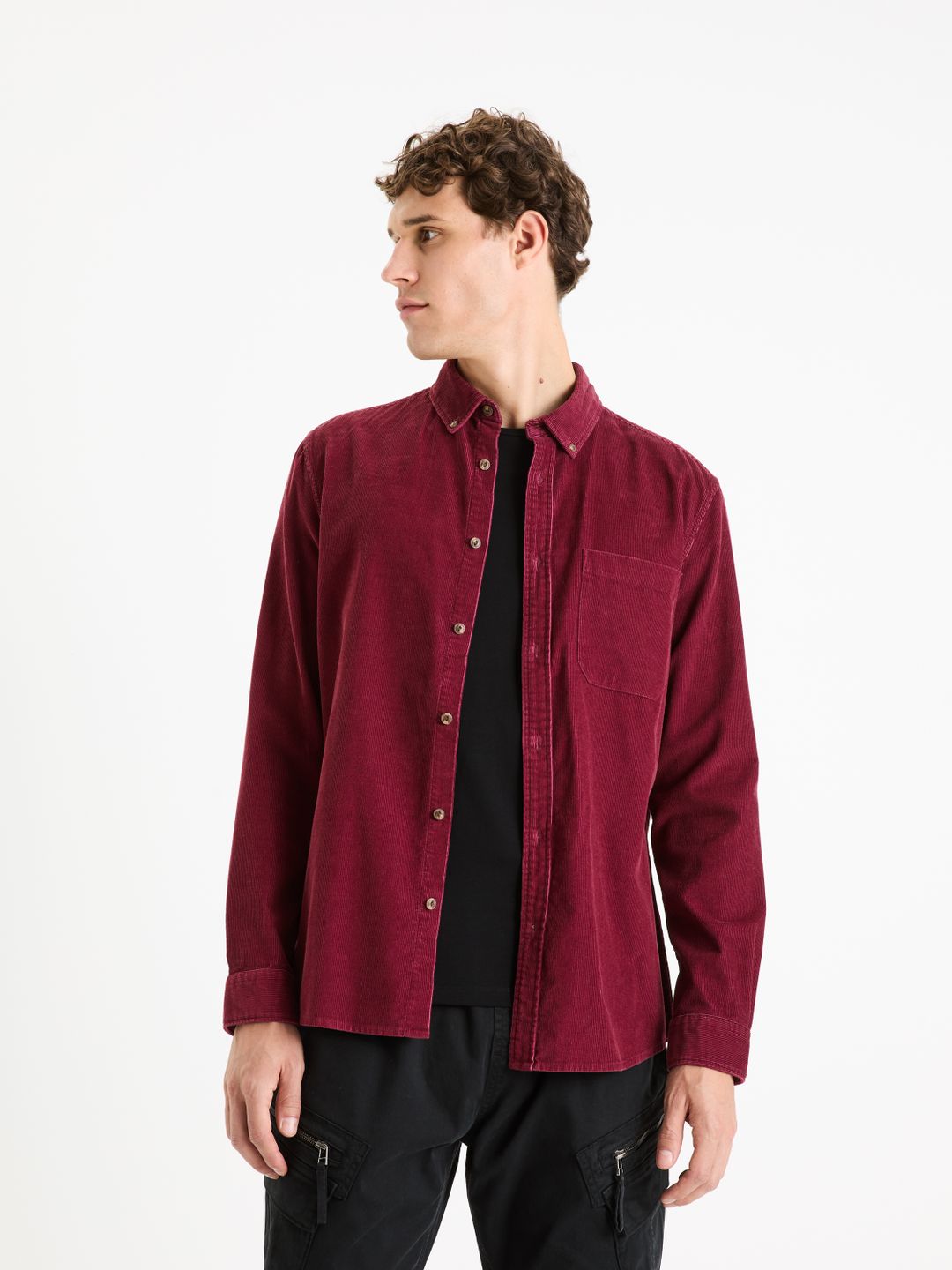 Manšestrová košile se zapínáním na knoflíčky. Klasický límeček. Na hrudi našitá kapsa. Pohodlný rovný střih. Dlouhé rukávy s manžetou. Jednobarevná.