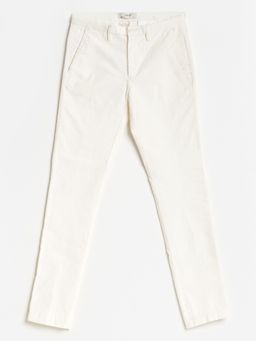 Pánské manšestrové kalhoty v bílé barvě. Zapínání na zip a knoflík. Kalhoty mají poutka na pásek. Klasické šikmé přední kapsy. Zadní kapsy se zapínáním na knoflík. Jsou vyrobeny z bavlny s elastanem.