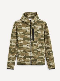 Mikina se zapínáním na zip s kapucí. U zipu malá kapsička na zip. Moderní maskáčový vzor.