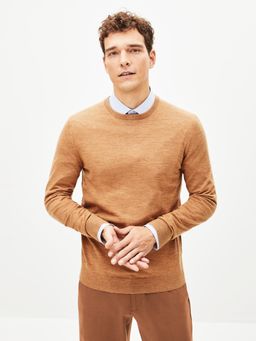 Pletený svetr s kulatým výstřihem. Kulatý výstřih ke krku. Příjemná a kvalitní merino vlna.