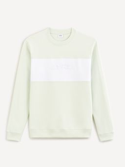 Mikina s výrazným pruhem v bílé barvě. Střih přes hlavu. Dlouhé rukávy s náplety a kulatý výstřih.