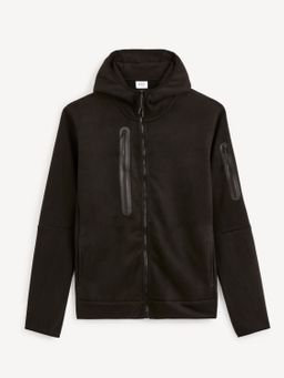 Jednobarevná mikina se zapínáním na zip. Navíc u zipu další kapsa na zip. Kapuce a šikmé boční kapsy. Příjemný materiál.