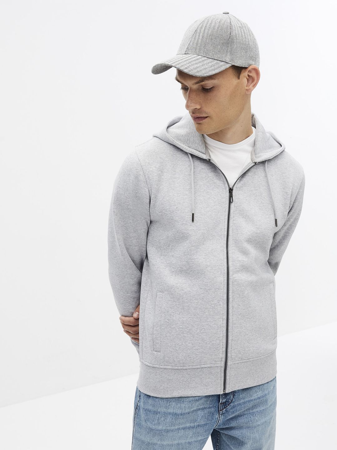 Mikina se zapínáním na zip. Prostorná kapuce se stahovací šňůrkou. Šikmé boční kapsy. Široké a pružné náplety. Příjemný materiál.