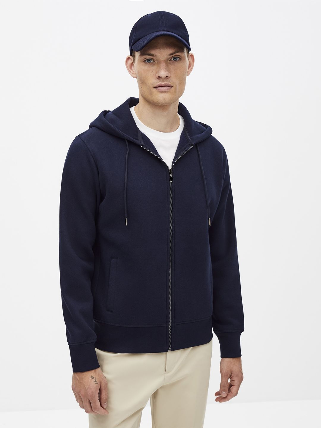 Mikina se zapínáním na zip. Prostorná kapuce se stahovací šňůrkou. Šikmé boční kapsy. Široké a pružné náplety. Příjemný materiál.