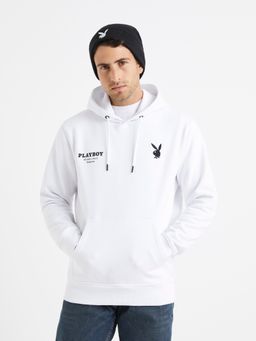 Mikina Playboy v bílé barvě. Kapuce se stahovací šňůrkou. Nápis na předním i zadním díle. Prostorná klokaní kapsa. Limitovaná edice.