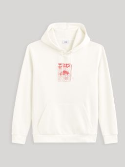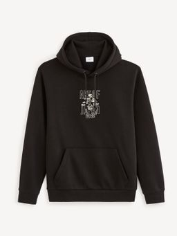 Mikina s výrazným potiskem na zadní straně. Kapuce se stahovací šňůrkou a dlouhé rukávy s náplety. Na přední straně našitá prostorná klokaní kapsa.