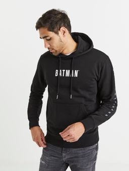 Mikina přes hlavu a potiskem Batman. Kapuce se stahovací šňůrkou. Široké a pružné náplety. Příjemný materiál.