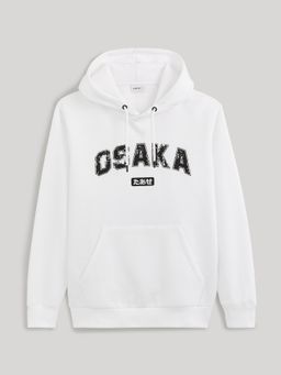 Bílá mikina s nápisem Osaka. Kapuce se stahovací šňůrkou. Prostorná klokaní kapsa. Široké a pružné náplety. Příjemný materiál.