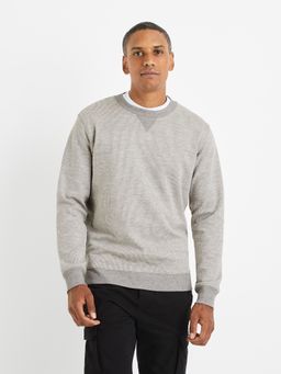 Bavlněná mikina s drobnou texturou. Kulatý výstřih ke krku. Dlouhé rukávy a široké a pružné náplety.