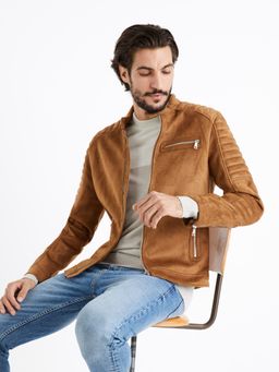 Motorkářská bunda v semišovém provedení má tři přední kapsy na zip a vnitřní kapsu. Zapíná se na zip a druk. Střih této bundy zvýrazní postavu a oživí každý outfit. Ozdobné prošití ramen a části rukávů. Bunda skvěle vynikne k modrým džínům a bílému tričku s krátkým nebo dlouhým rukávem.
