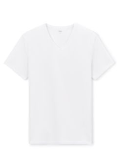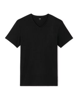 Hladké tričko s krátkým rukávem. Tričko má výstřih do V a rovný střih.