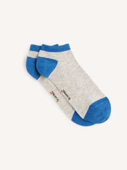 Nízké ponožky. Zesílená pata i špička v kontrastní barvě. Pružný žebrovaný lem.