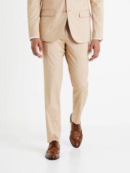 Oblekové kalhoty patří do pánského šatníku. Kalhoty mají pevný pas s poutky a skryté zapínání. Boční šikmé kapsy a zadní zapuštěné kapsy se zapínají na knoflíky. Ideální oděv pro každou formální příležitost.