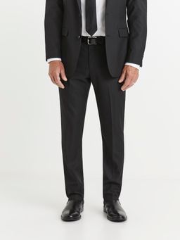 Kalhoty oblekové ve slim střihu. Klasické zapínání na zip a knoflík. Pevný pas s poutky na pásek. Nažehlené puky. Kalhoty lze prát.