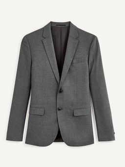Elegantní sako s podšívkou. Sako má úzký střih a je ušito z tkaniny s kaviárovým vzorem. Klasické klopy a zapínání na dva knoflíky. Kapsy s klopou a náprsní drobná kapsička na kapesníček. Sako lze nosit na košili i svetr a nejlépe vynikne ke kalhotám se stejným vzorem.