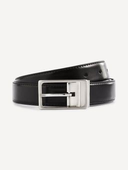Pánský kožený pásek s přezkou. Širší kovová přezka lesklá s jedním trnem. Pásek lze použít oboustranně. Pěkné kvalitní zpracování.