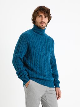 Pletený svetr s rolákem. Výrazný copánkový vzor. Dlouhé rukávy. Pružné žebrované lemy. Jednobarevný.