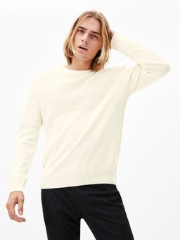 Jednobarevný svetr z bavlny a akrylu. V horní části hrubší copánkový vzor. Svetr má kulatý výstřih a pružné lemování.