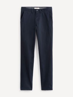 Kalhoty slack ve straight střihu. Pevný pas se zapínáním na zip a knoflík. Nechybí poutka na pásek. Šikmé boční kapsy a zadní kapsy. Světle šedá barva. Bavlněné s elastanem.