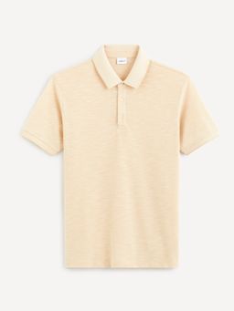 Bavlněné polotričko s měkkým límečkem. Zapínání na tři drobné knoflíčky. Krátký rukáv a rovný střih. Drobná pique struktura. Svěle žlutý melír.