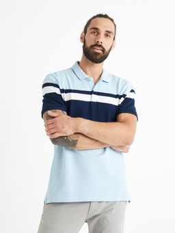 Bavlněné tričko s širokým pruhem v kontrastní barvě. Krátký rukáv a kulatý výstřih. Moderní tričko k džínům a teniskám.