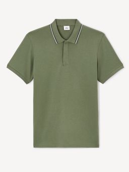 Khaki polo tričko s krátkými rukávy a barevným lemováním na límečku. Tričko má rovný střih a je vyrobeno z kvalitní bavlny.