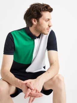 Bavlněné polo tričko. Drobná a jemná pique struktura. Krátký rukáv a límeček se zapínáním na knoflíčky. Zajímavá barevná kombinace.