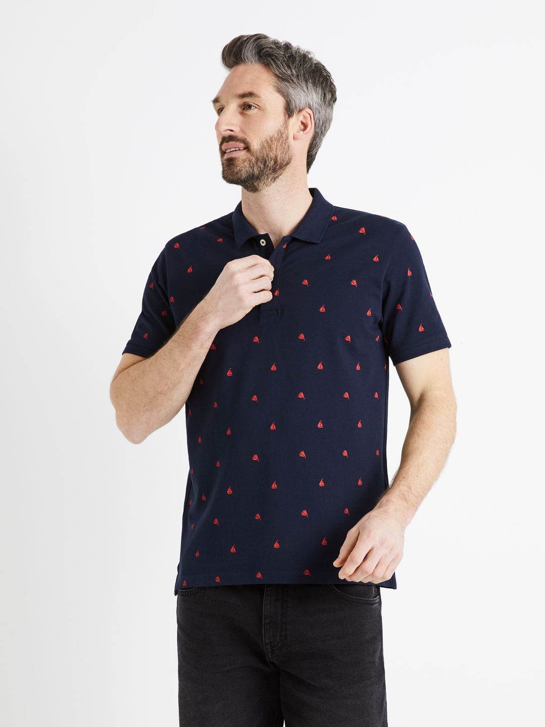 Vzorované polo tričko. U krku měkký límeček a zapínání na 2 knoflíčky. Drobná reliéfní struktura pique. Krátké rukávy a rovný střih.