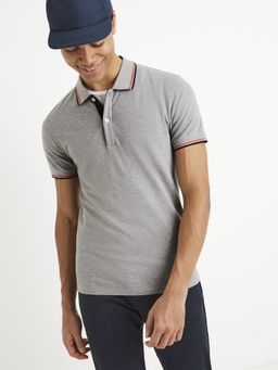 Bavlněné polo tričko s barevným olemováním rukávů a límečku. Krátký rukáv a rovný střih. Drobná reliéfní struktura pique. S obsahem elastanu.