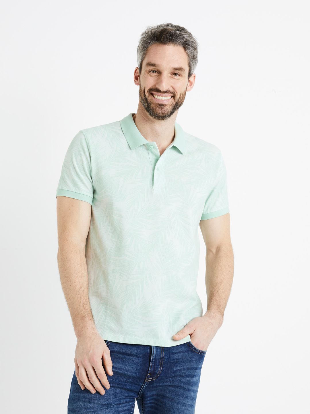 Vzorované polo tričko. U krku měkký límeček a zapínání na 2 knoflíčky. Drobná reliéfní struktura pique. Krátké rukávy a rovný střih.