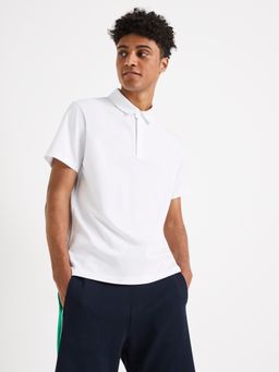 Bavlněné polo tričko. Krátký rukáv a límeček se zapínáním na knoflíčky. Rovný střih.