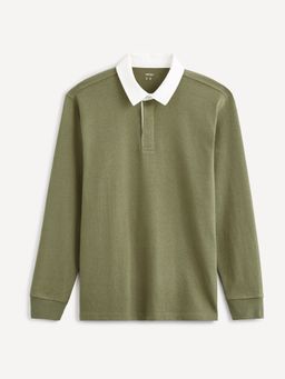 Polotričko s dlouhým rukávem. Límec v kontrastní bílé barvě. Rukávy s náplety. Rovný volnější střih. 100% bavlna.