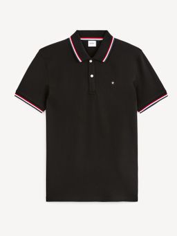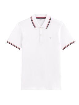 Polo tričko s barevným olemováním rukávů a límečku. Krátký rukáv a rovný střih.