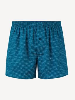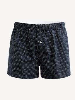 Trenýrky z bavlněného popelínu. Drobný puntíkatý vzor. Klasický vzdušný střih s pružným pasem. Poklopec s knoflíčky.