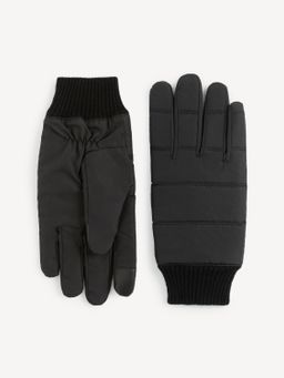 Zateplené prstové rukavice s prošitím a s pružným žebrovaným nápletem.