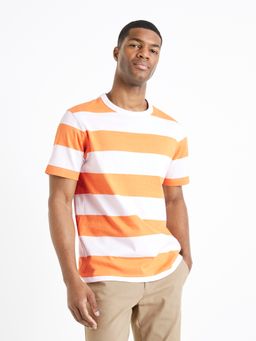 Pruhované tričko s krátkým rukávem. Kulatý výstřih ke krku. Příjemný materiál.