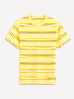 Pruhované tričko ze 100% bavlny. Tričko má krátký rukáv a kulatý výstřih. Letní žlutá barva.