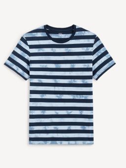 Pruhované tričko s krátkým rukávem. Rovný střih a kulatý výstřih. Měkký bavlněný úplet s batikou.