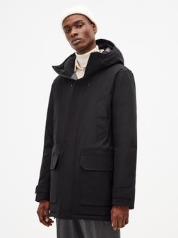 Zateplená parka s kapucí na pevno. U krku vysoký límec a stahovací šňůrka. Zapínání na zip a krycí klopa zipu na patentky. Přední kapsy s klopou. Dvě vnitřní skryté kapsy. V pase regulační šňůrka.