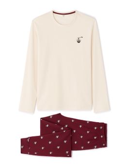 Ideální pro moderního muže, který hledá pohodlí a relaxaci. Set tvoří tričko s dlouhými rukávy a kalhoty, oba z měkké bavlny a s jemným vzorem misky s nudlemi, které dohromady vytváří stylový a pohodlný outfit na doma.