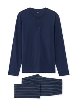 Pro moderního muže, které spojuje styl a maximální relaxaci. Vršek tvoří tričko s dlouhým rukávem z měkké 100% bavlny, spodní díl doplňují dlouhé kalhoty ze stejného pohodlného materiálu. Ideální volba pro klidné večery i pohodlné ráno.